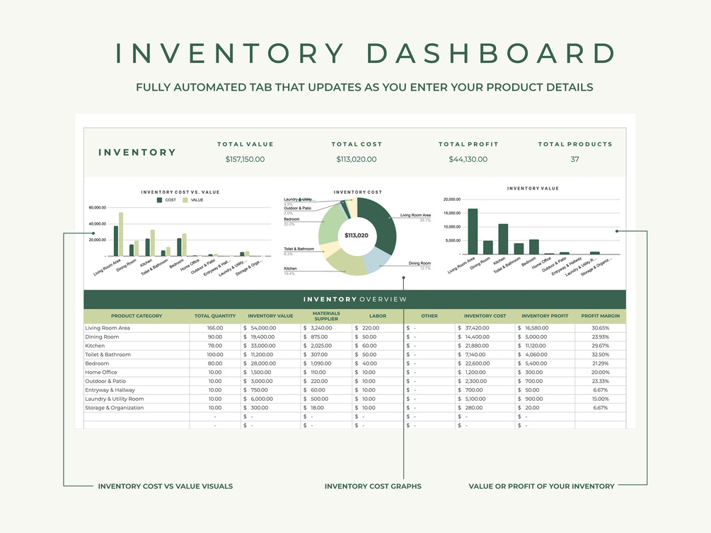 Upon purchase, you'll receive a PDF file with a link to access your Inventory Tracker Spreadsheet.