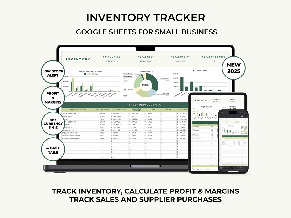 Inventory Tracker Spreadsheet Tool, Small Business Sales and Purchases Tracker, Product & Material Tracker Template, Inventory 2025